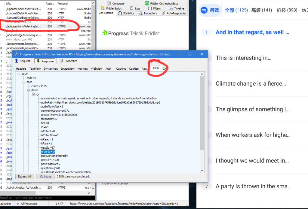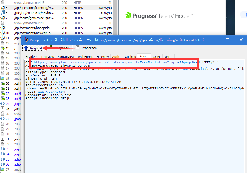 在Fiddler中可分析得出点击WFD的Item时会发送一条request对应题目的去服务器请求对应的详细内容。