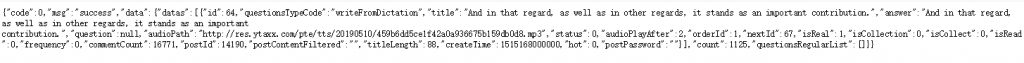 至此,可以得出WFD列表中每个Item的数据API为:https://www.ytaxx.com/api/questions/listening/writeFromDictation?type=2&pageNo=1